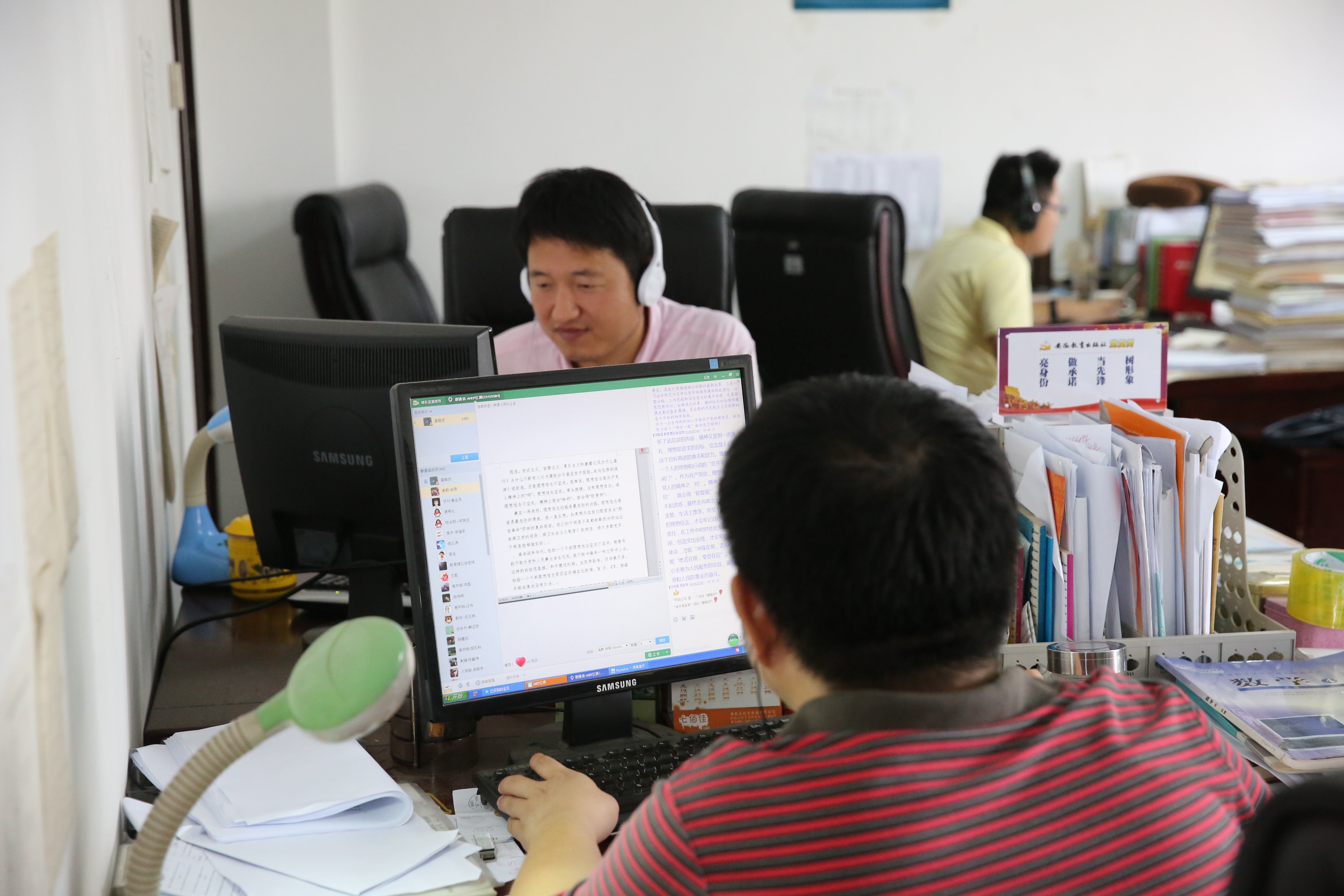 教育社党支部组织委员武常春同志在QQ群中结合工作实际,从理想信念、工作实践等方面出发,用身边生动的事例,用自己朴实的话语,带领大家深入学习领会了习近平总书记关于理想信念教育的系列重要讲话精神。这种新颖的授课方式极大地激发了大家的参与积极性。在授课完毕后的二十分钟的提问和讨论过程中,各位党员和入党积极分子在QQ群中踊跃发言,请教自己理解不透的问题,谈自己的心得体会,表达自己的理想决心。他们有的表示“武总刚刚谈到的政治纪律教育,使我收获颇丰。作为一名共产党员,我将明确政治方向……树立正确的事业观、价值观,扎实工作,在平凡的工作中实现理想和价值”,有的表示“做一名合格的共产党员不是空洞的政治口号,在以后的工作和生活中,我一定会自觉加强党性修养……做一名工作认真、让组织放心的合格共产党员”,有的表示“作为一名编辑,要立足当前,脚踏实地,从自己做起。我们每个共产党员从事的本职工作,也许看上去是不起眼和无足轻重的,但它都是实现理想的过程中不可缺少的环节。要发挥党员的先锋模范作用,把理想信念融入到工作中,让自己平凡的工作变得不平凡” ……