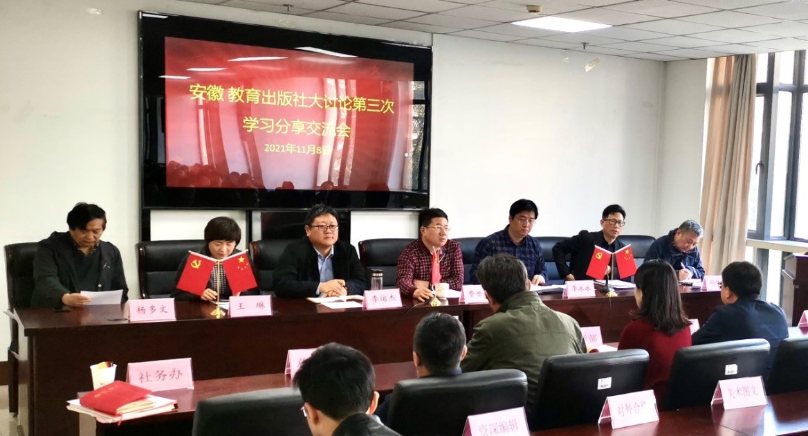 2021年11月8日上午,安徽教育出版社在四楼会议室召开“大讨论”第三次学习暨分享交流会。党总支委员、班子成员、全体编辑参加了本次会议。