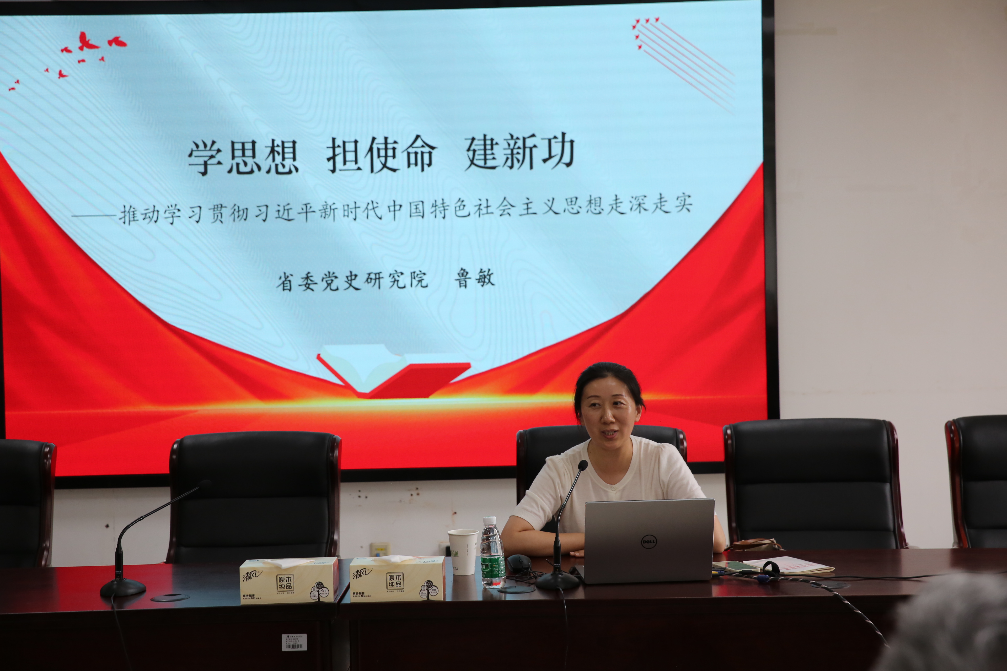 为深入开展学习贯彻习近平新时代中国特色社会主义思想主题教育,6月21日下午,安徽教育出版社党总支举办了专题讲座。本次讲座由安徽省委党史研究院鲁敏主讲,题为《学思想 担使命 建新功——推动学习贯彻习近平新时代中国特色社会主义思想走深走实》。