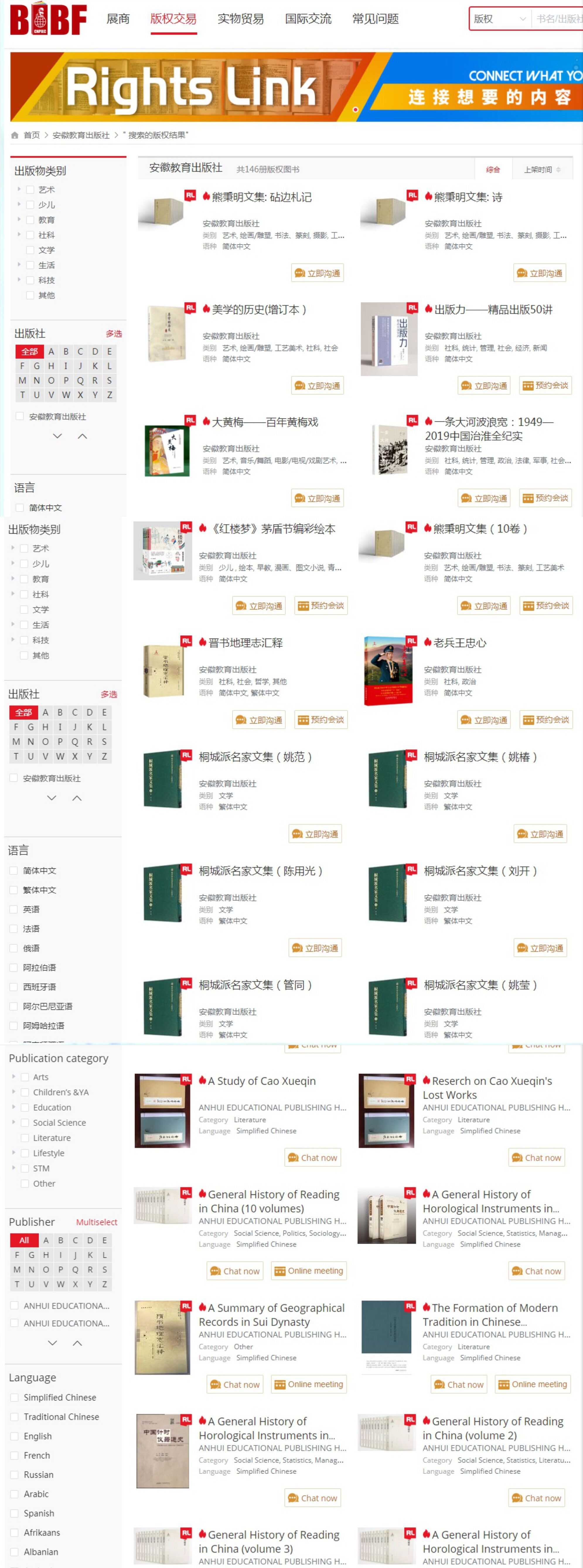 本届BIBF网上展会的一大亮点是进行多样的在线活动和版权会谈活动,我社精心筹划,积极准备,已制作完成并上传“光影之间,春风化雨——《当教育遇上电影》分享见面会”“来自缝隙的光线——鲁迅文学奖诗歌奖作品《九章》中英双语版新书发布会”“新时代的出版心法——聂震宁《出版力》新书发布会”等5个在线活动,和《熊秉明文集》等6个重点图书推介视频。同时,我社也组织、发起了11场线上版权会谈,包含英国、日本、马来西亚、越南等国出版社。