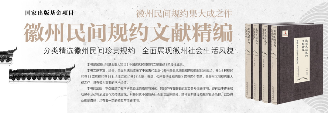 南开大学历史学院卞利教授编著的《徽州民间规约文献精编》共计四卷,分为《村规民约卷》《会馆、善堂、公所暨行业规约卷》《社会生活规约卷》和《宗族规约卷》四个专题。