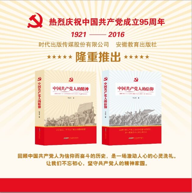 2016年7月1日,在中国共产党建党95周年之际,安徽教育出版社隆重推出图书《中国共产党人的精神》《中国共产党人的信仰》,为党的生日献礼。
