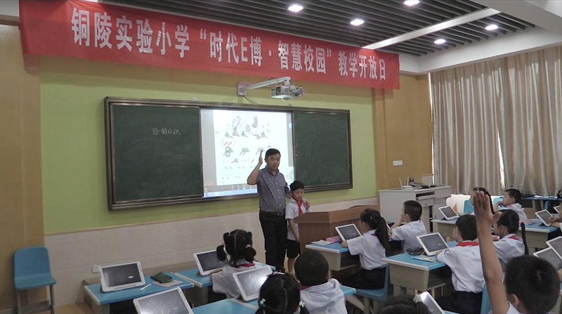 此次铜陵市实验小学举办教学开放日,是一段时间以来“时代e博·智慧校园”使用效果的一次集中展示,“时代e博·智慧校园”所提供的优质教学资源和强大的功能应用使得课堂教学更加高效,展现形式更加丰富,利用信息化教学手段推动课堂教学再上一个台阶。