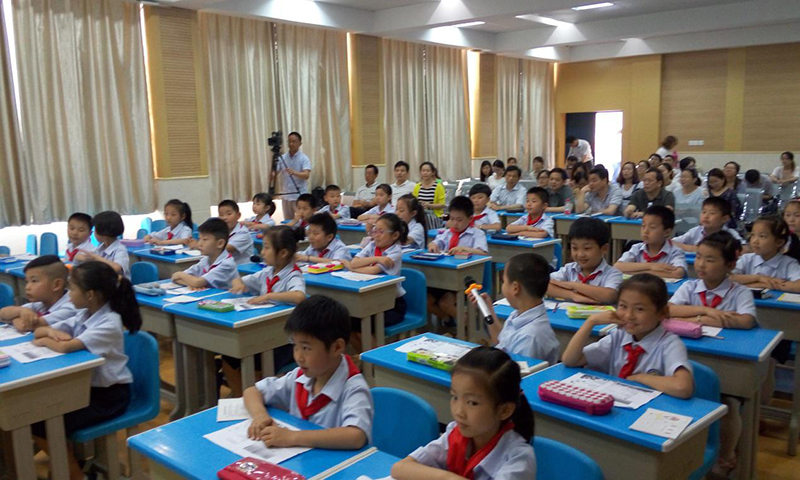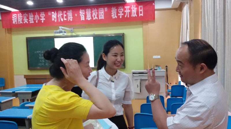 为促进信息技术在教育教学中的深度融合运用,打造智慧校园环境,提升教师使用网络教育资源的能力,铜陵市实验小学于2016年6月15日举办“时代e博·智慧校园”教学开放日活动。铜陵市铜官区教育局党工委书记、局长黄建平,副局长谷运东,区教研室汪建文主任及全区小学校领导和教师代表近200人现场进行教学观摩。