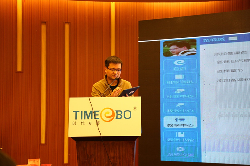 会上,合肥市青年路小学范晓燃老师结合日常教学工作实际,通过老师、学生两个角色在实际教学中的应用,借助平板电脑利用“时代e博·智慧校园”电子书包实现备课、授课、作业管理基于微课的翻转课堂的资源推送等教学应用演示,让参会老师初步了解“时代教育在线”云平台是如何为学校提供“基于网络学习空间的电子书包”的综合解决方案。