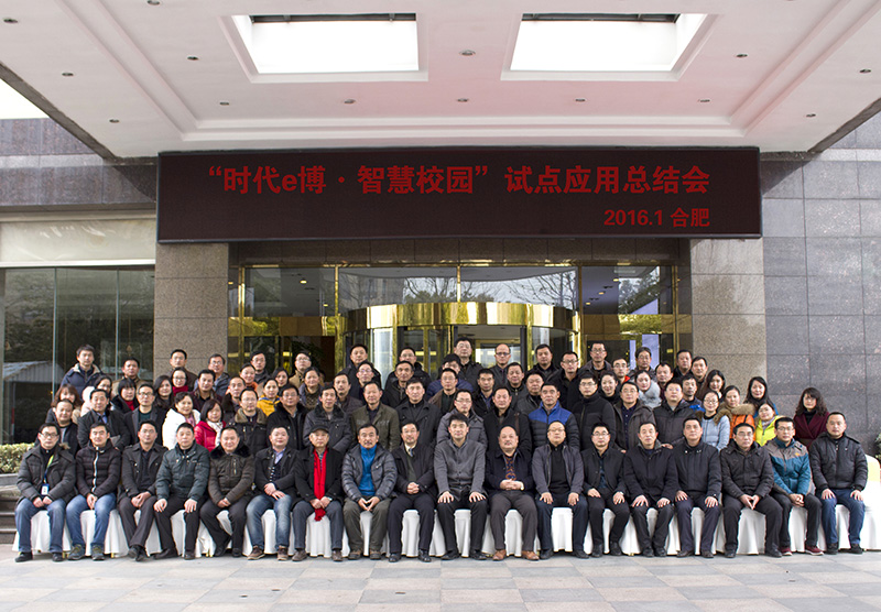 为提高“时代教育在线”的试点应用效果,2016年1月16日至17日,“时代e博•智慧校园”试点应用总结会在合肥成功召开。来自合肥、芜湖、宣城、铜陵、马鞍山、淮南、淮北等地50所学校校领导和骨干教师,以及芜湖市电教馆、宣城市宣州区教育局领导共100多人参加会议。本次座谈会共分经验分享和信息化论坛两个部分。
