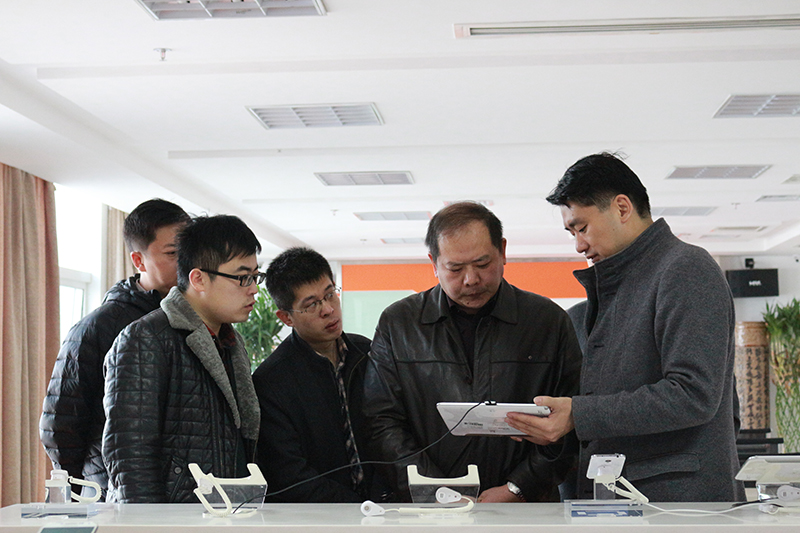 在数字体验馆内,公司总经理阮怀伟向考察组一行讲解演示了“时代教育在线云平台V2.0”、全媒体数字内容出版管理云平台、教学大师资源库系统、人教数字校园系统、时代优课教学客户端、时代教育在线手机客户端等核心产品,详细介绍了“全媒体数字出版运营生态圈”建设思路以及相关技术研发情况。在参观过程中,王韶松总经理对公司数字教育产品表现出浓厚的兴趣,不时询问产品的操作方法和技术细节,并对公司在数字出版和数字教育体系建设上取得丰硕成果给予了极大的肯定。