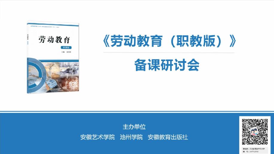 10月30日上午,安徽教育出版社协同安徽艺术学院、池州学院举办了2021年《劳动教育(职教版)》线上备课研讨会。安徽艺术学院副校长柳友荣、池州学院劳动教育研究中心副主任沈丽丽分别就学校“劳动教育能力”建设与提升、职校生劳动教育课程的教学设计作了生动的主题报告。来自全国各地的数十位高校教师通过网络远程参会并与嘉宾进行实时互动。