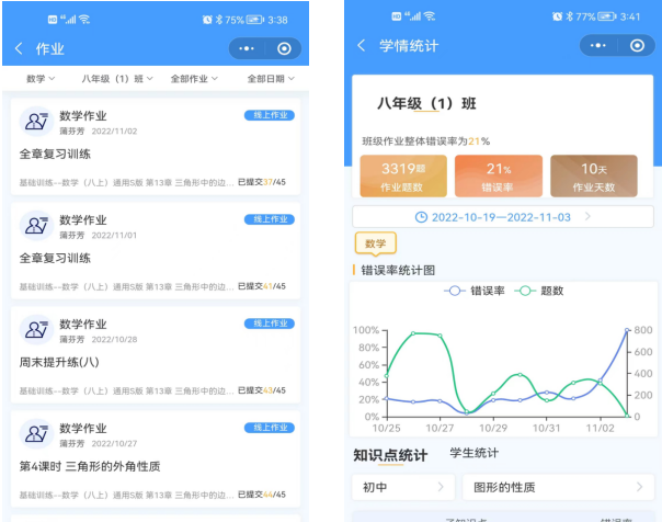 “智慧作业”不仅为学生学习减负增效,还为家长减轻了作业辅导的负担。长丰县北城力高学校九年级刘杰的爸爸深有感触,疫情期间他与爱人要上班,孩子自己在家上网课,无法掌握孩子的学习情况。“使用‘智慧作业’后,只要点开‘智慧作业’学生端,就能查看孩子的学习轨迹,查阅作业情况,孩子对知识的掌握情况便一目了然。”