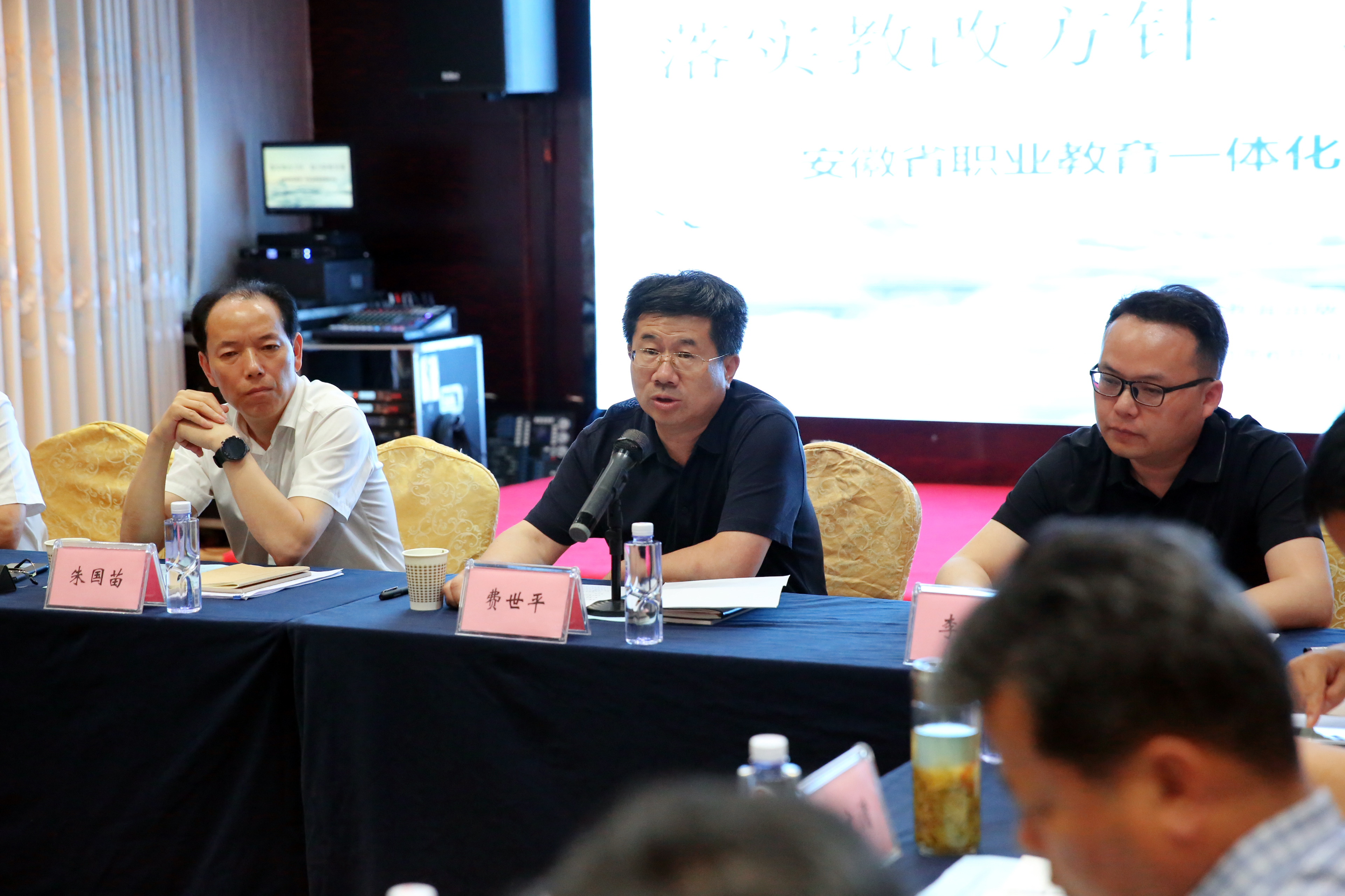 朱国苗副会长介绍了安徽职业教育的发展现状,对《职业教育法》做出了解读,最后指出我们应该抓住新形势下的机遇,开创职业教育发展的新局面。