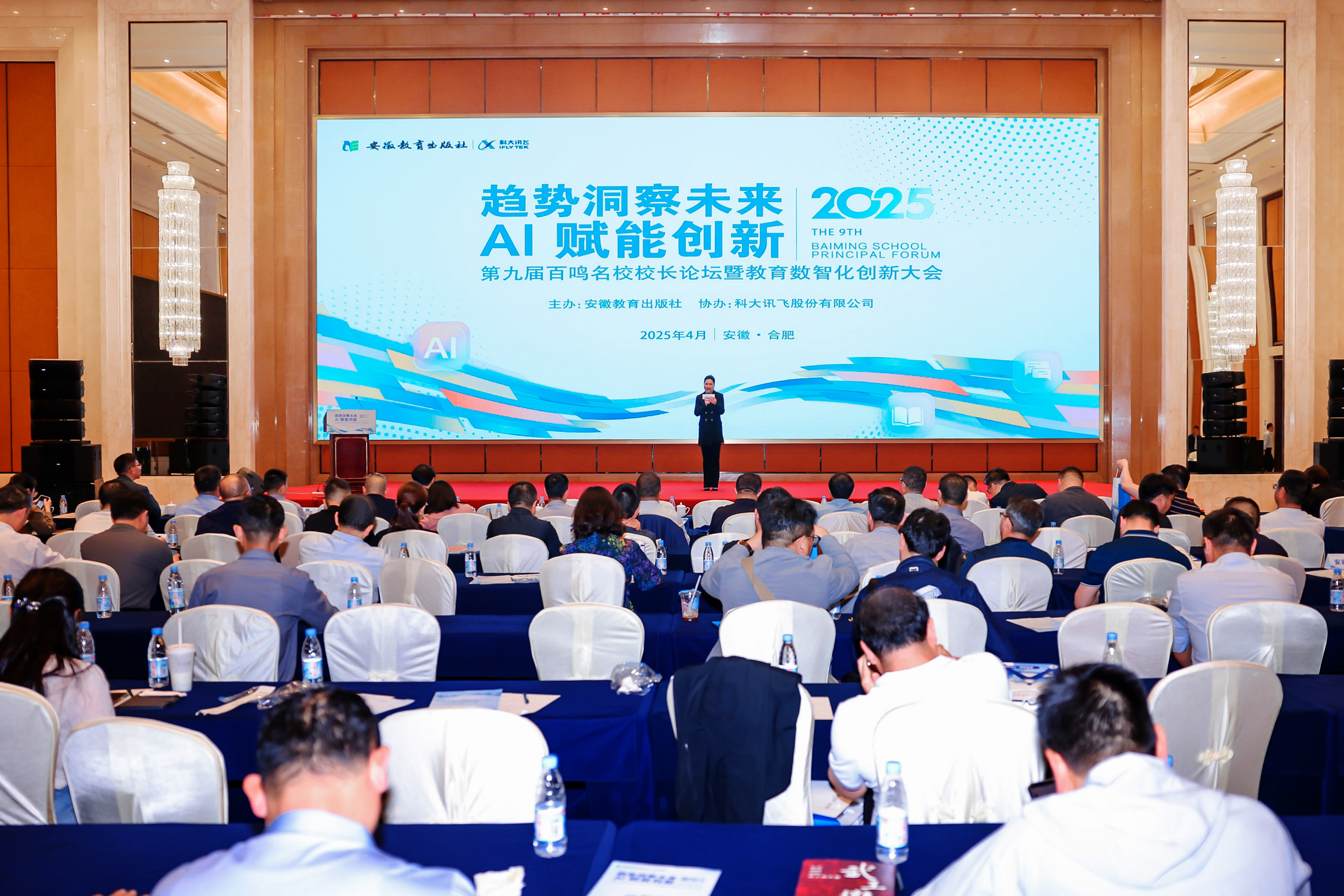 2025年4月11日,由安徽教育出版社主办、科大讯飞股份有限公司协办的第九届“百鸣名校校长论坛暨教育数智化创新大会”在合肥盛大召开。中国新闻出版研究院研究员鲍红等专家出席会议。本次大会以“趋势洞察未来,AI赋能创新”为主题,汇聚了全国教育行政部门领导、教育信息化专家、出版专家、高中名校校长及AI企业代表等400余人,共商人工智能时代教育高质量发展的创新路径。