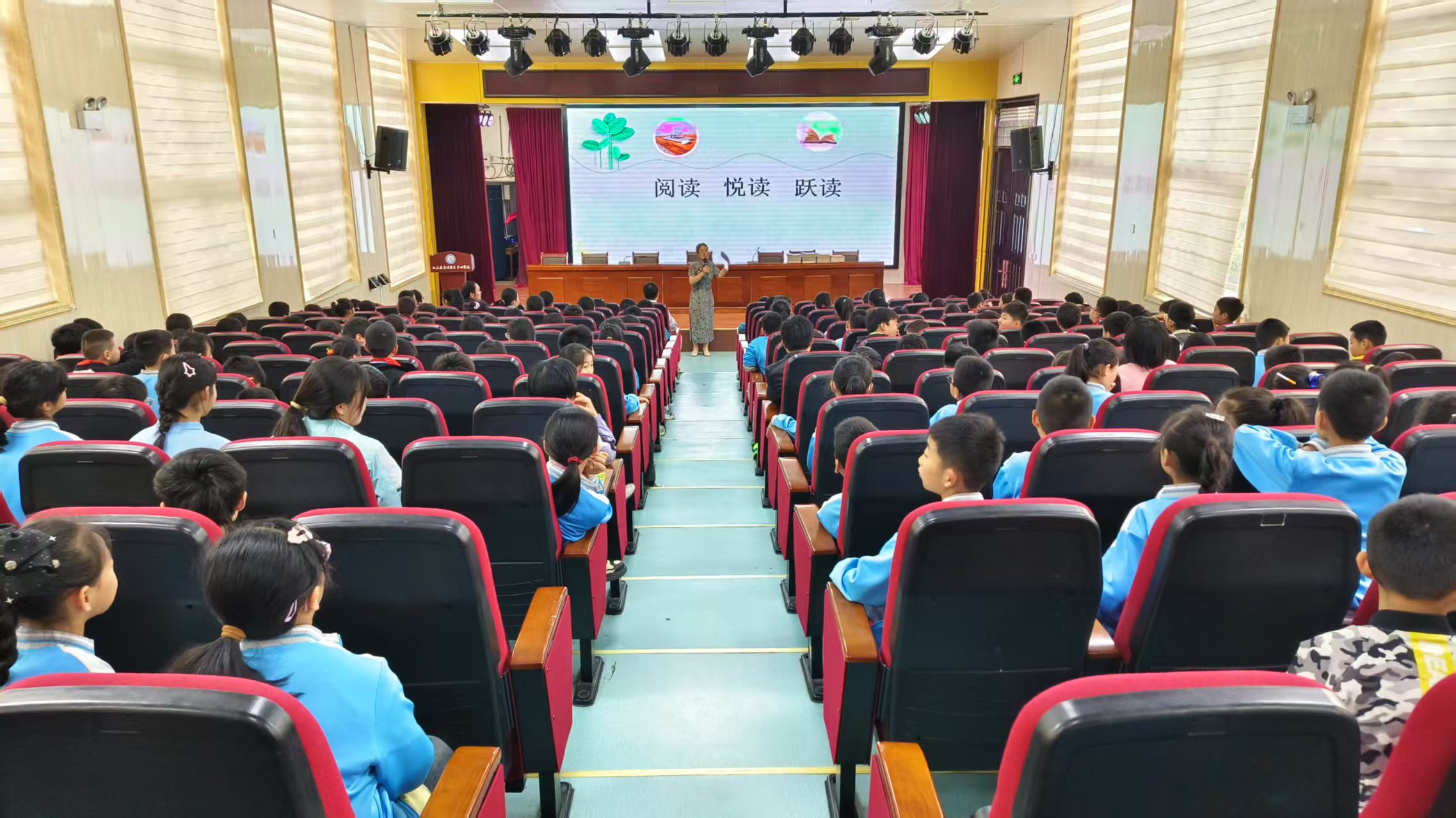 2025年4月22日上午,“红蜻蜓阅读分享会”专家讲座在肥东县店埠学区中心学校成功举办。活动约请合肥市庐阳区吴文超名师工作室成员、合肥市杏林小学资深语文教师管厚凤做题为“阅读 悦读 跃读”的讲座,指导中、高年级同学的课外阅读。管老师的讲座图像、音频、视频资料丰富,引人入胜;管老师的讲解深入浅出循循善诱,同学们积极参与,现场气氛热烈,讲座获得师生的一致好评。